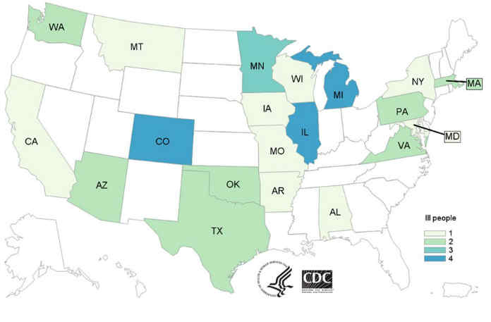 Of the 38 reports of illness so far, the earliest illness onset date was December 21, 2015, and the latest, May 3, 2016. Ten people ended up in the hospital. The range of ages goes from infants to someone over 90. Ill people range in age from 1 year to 95, with a median age of 18. Illnesses that occurred after May 5, 2016, if there are any, will be included in a later outbreak count. Given the widespread nature of this outbreak to date, we expect additional reports of E. coli poisoning.