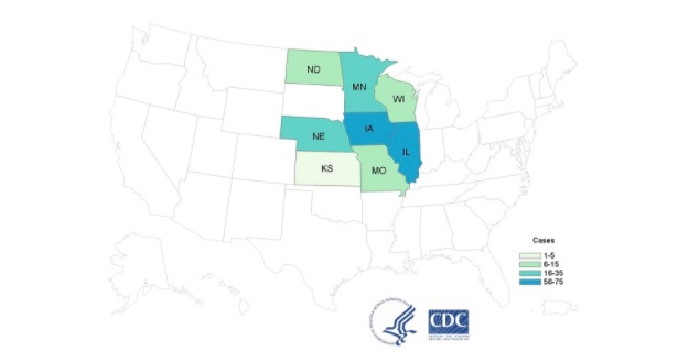 The people sickened in this outbreak, who range in age from 16 to 92 years old, reported the onset of Cyclospora symptoms on dates ranging from May 11, 2020 to July 4, 2020. The number of cases reported from each of the eight states is: Illinois (57), Iowa (74), Kansas (1), Minnesota (25), Missouri (10) Nebraska (20), North Dakota (6), and Wisconsin (13).