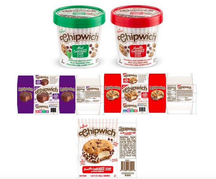 - 4 oz Vanilla Chocolate Chip Ice Cream Sandwich, Lot numbers 23298-24164 •